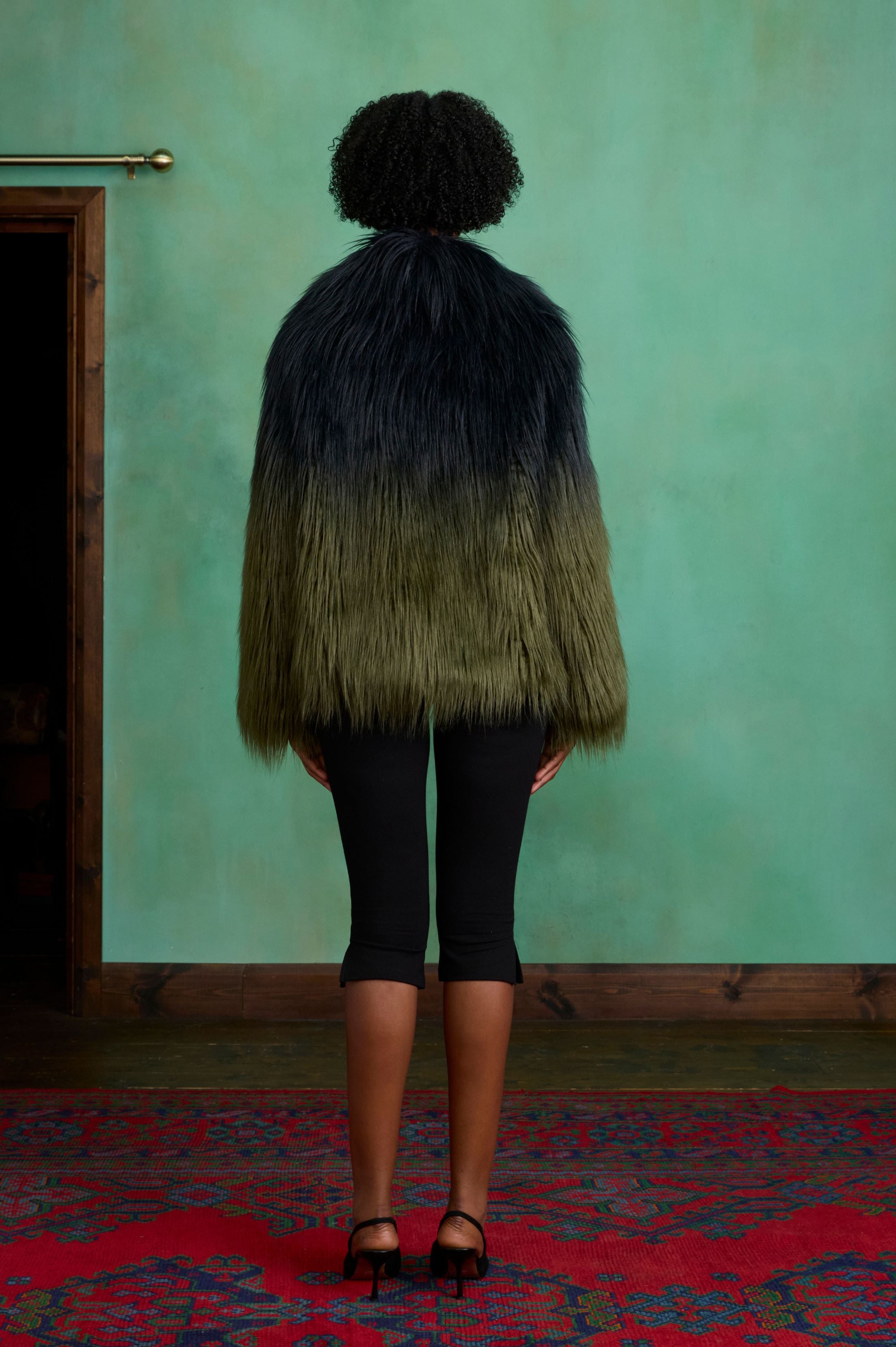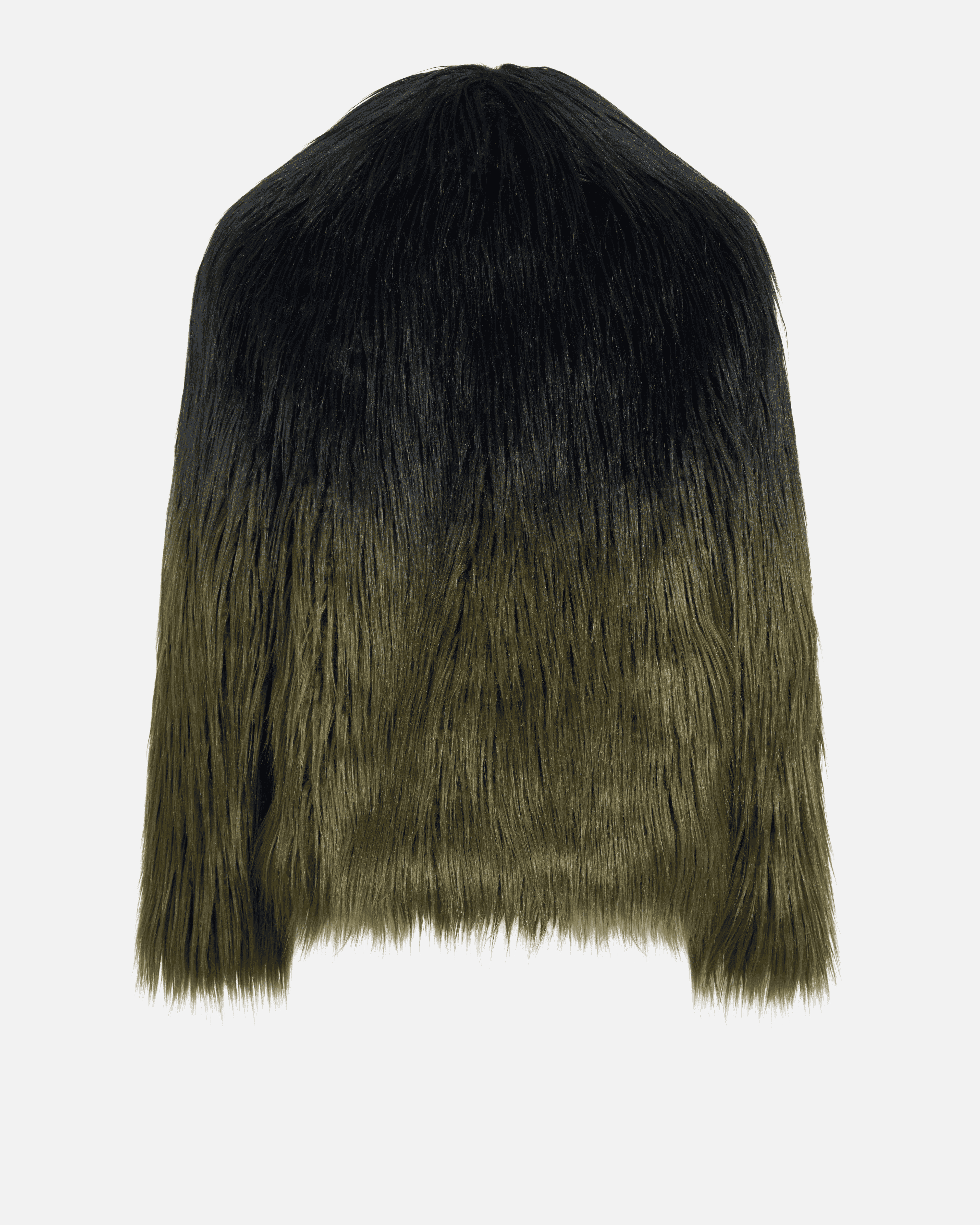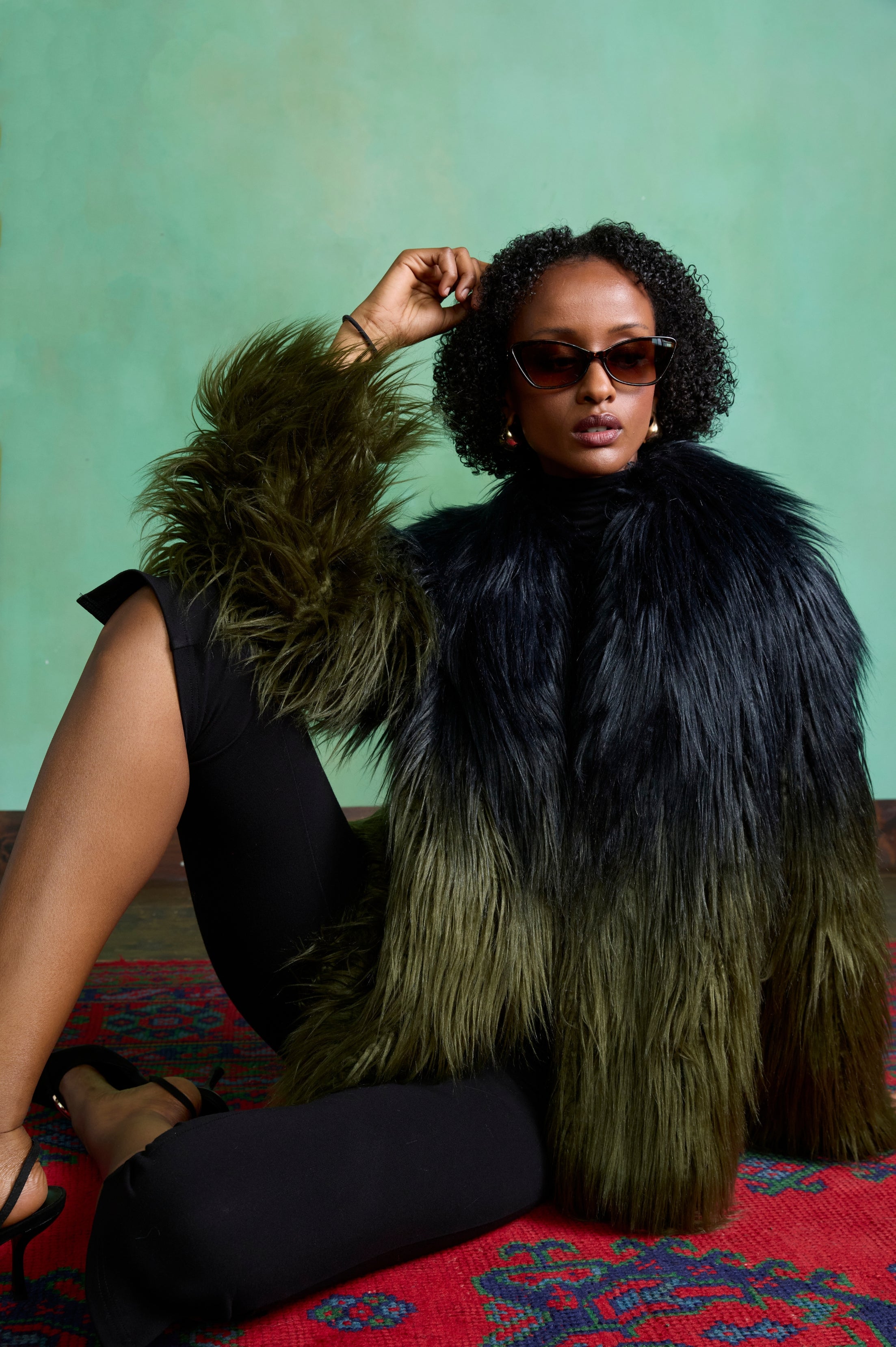 The Biella Faux Fur Short Coat is a striking, high-concept statement piece, seamlessly blending deep black and olive green in a luxurious two-tone gradient. Made from plush faux fur, its voluminous shape exudes both confidence and intrigue. Ideal for openings, premieres, or avant-garde gatherings, this coat channels modern bohemian flair with a sophisticated edge—bold, daring, and impossible to forget.